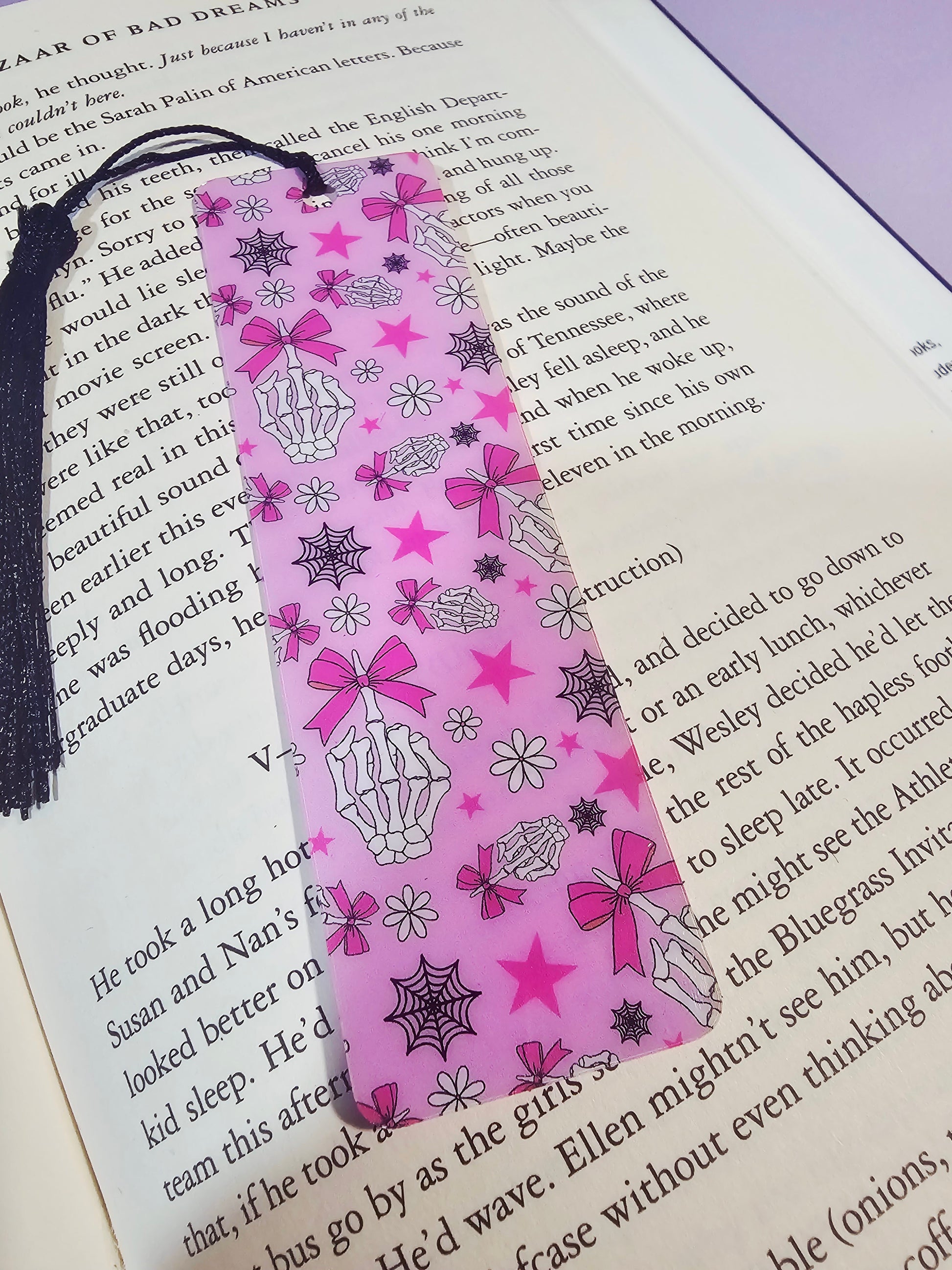 Comes with one attached black tassel. Includes cardboard bookmark sleeve - ready for gifting.