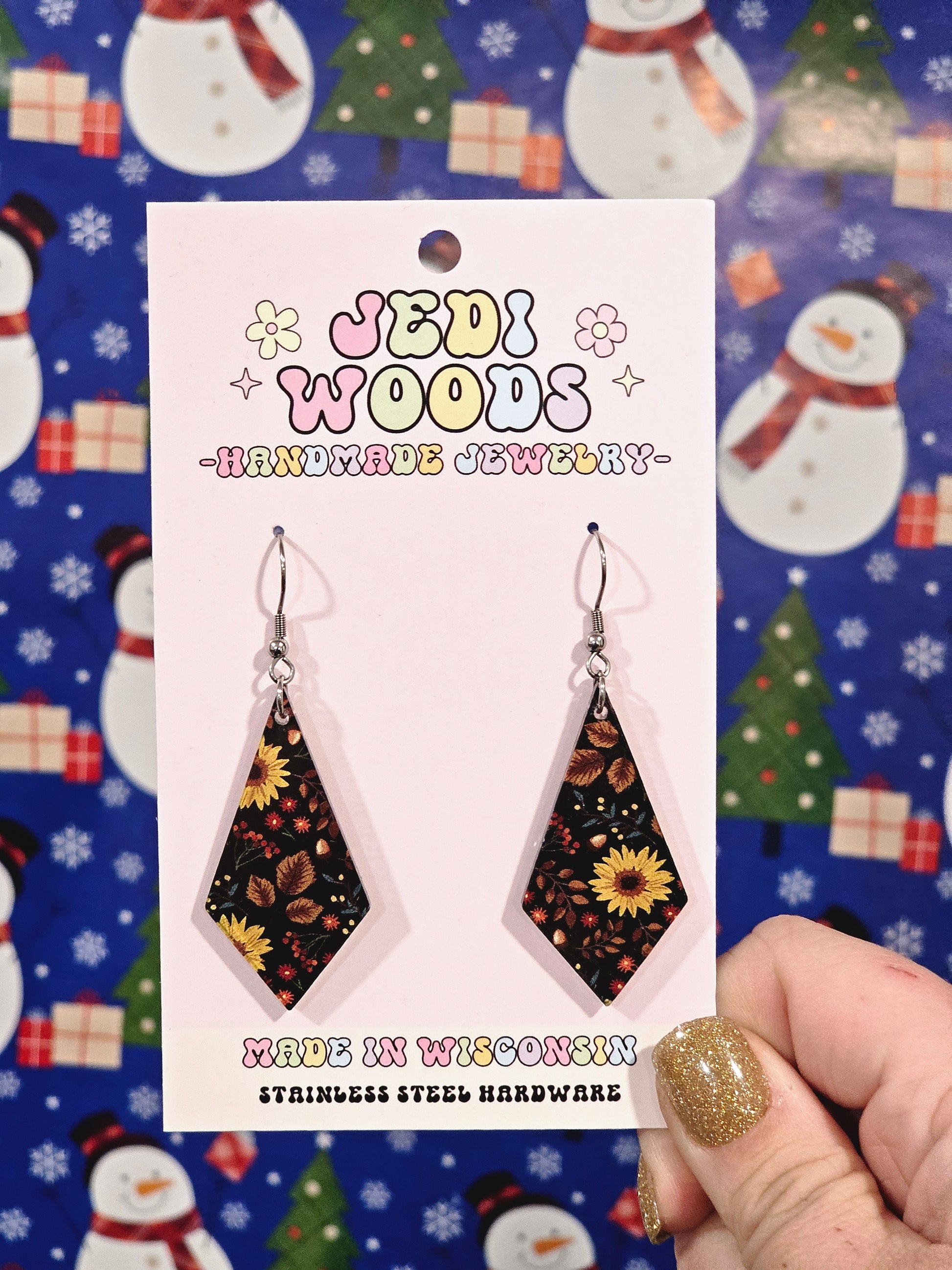 Seasons Changing Dark Floral Diamond Shaped Earrings