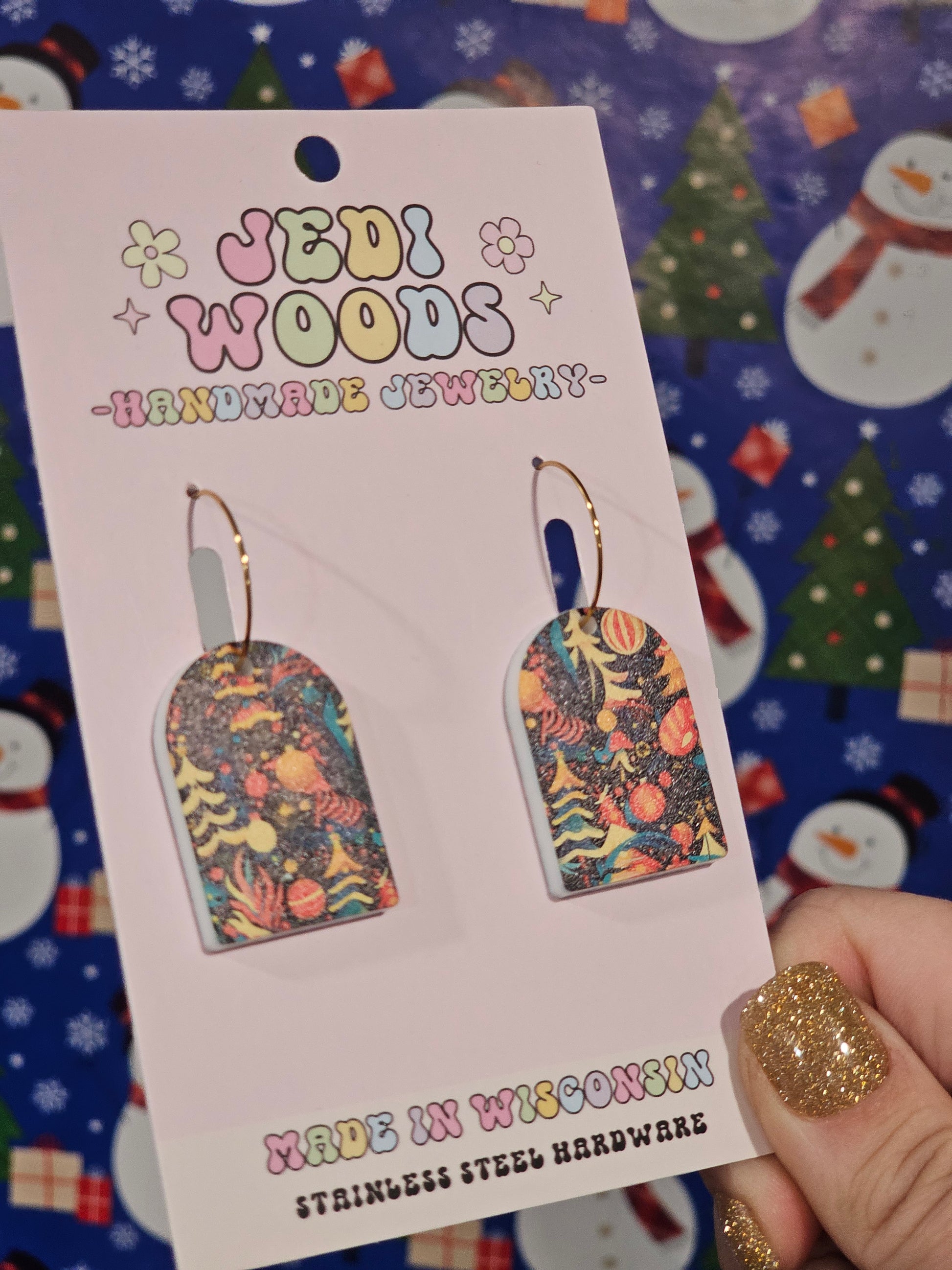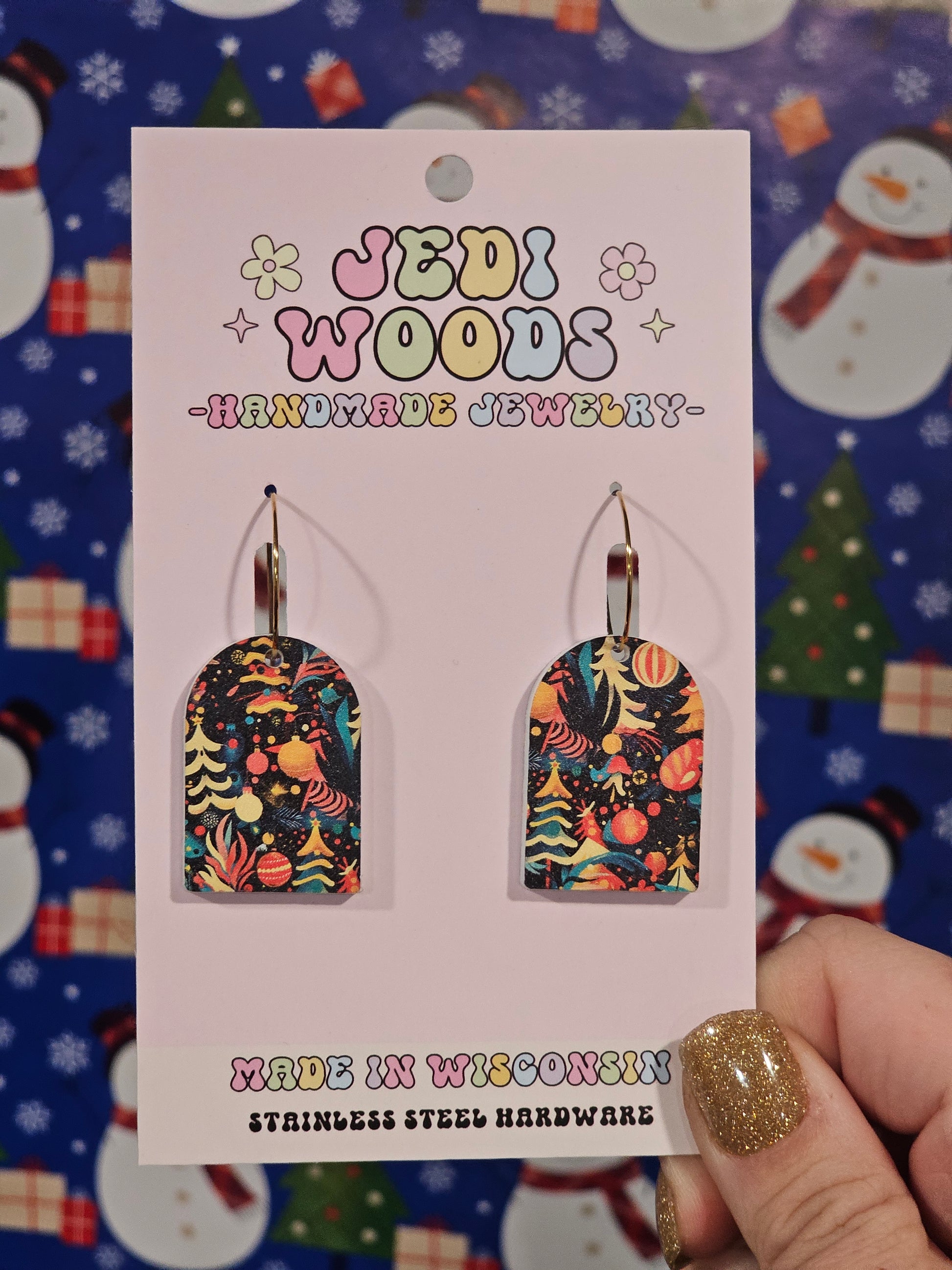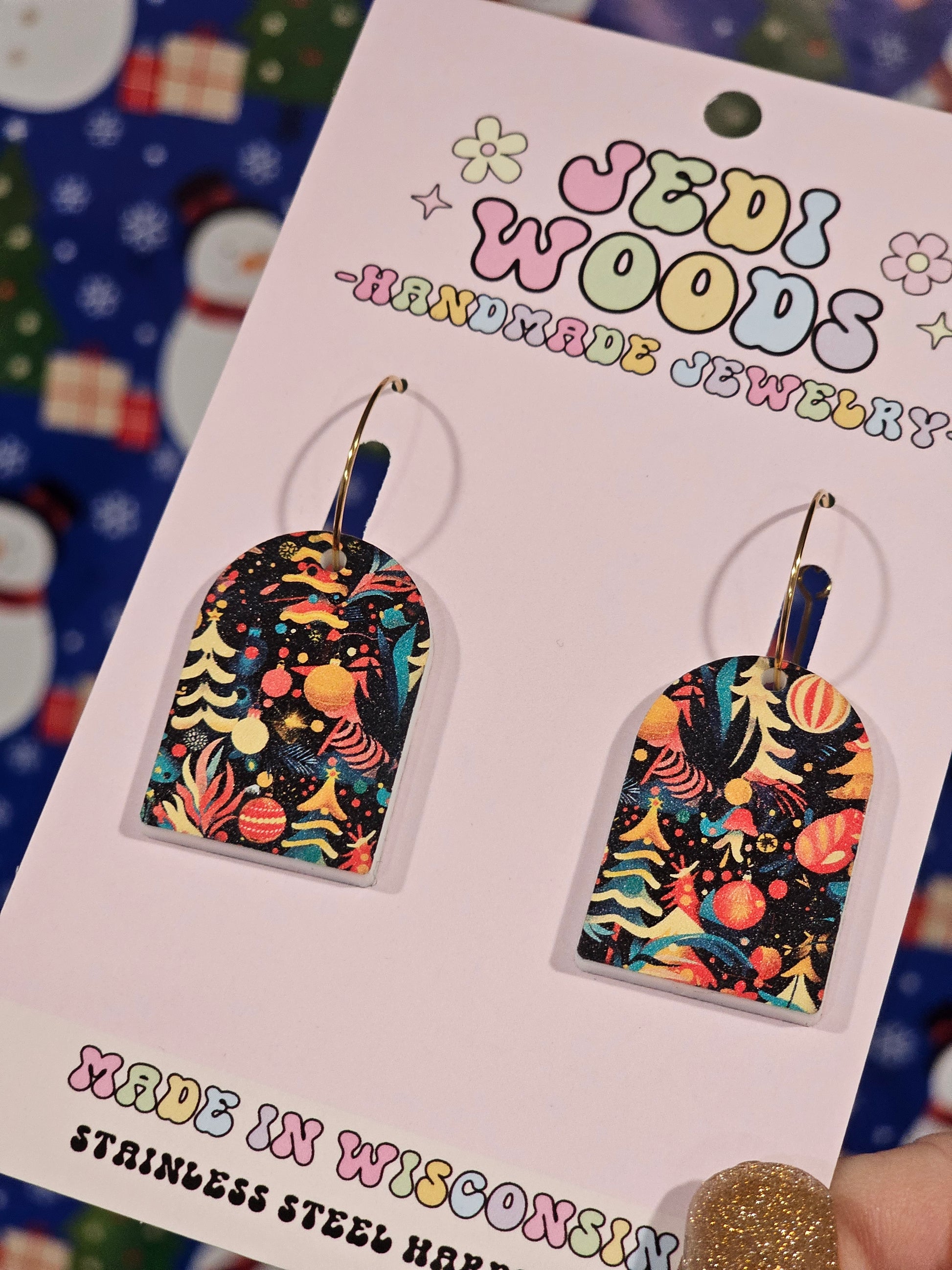 Watercolor Christmas Tree Arch Earrings