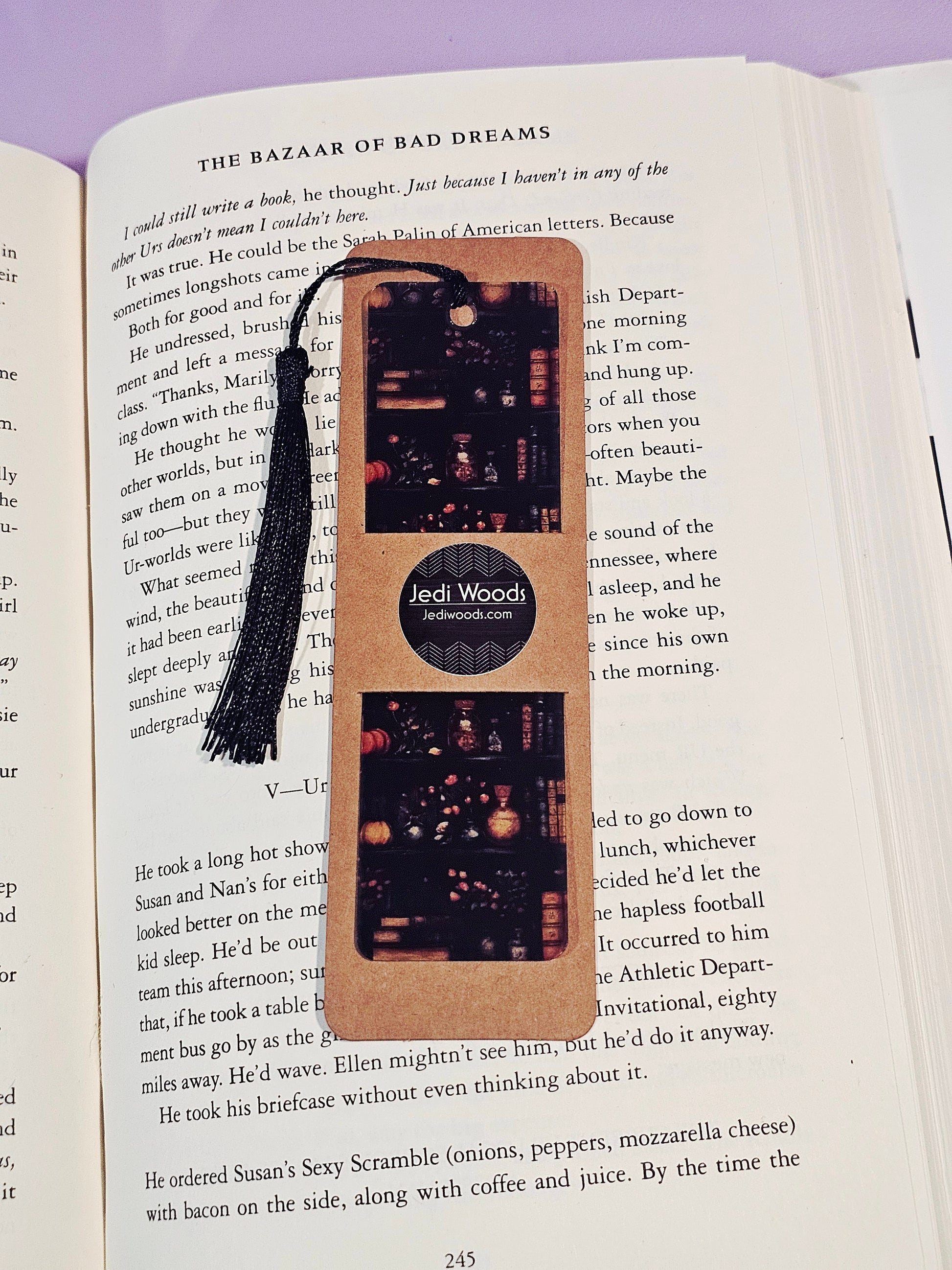 Comes with one attached black tassel. Includes cardboard bookmark sleeve - ready for gifting.
